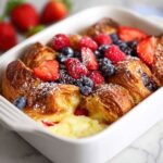 This Berry Croissant Bake is a delightful and easy-to-make breakfast casserole featuring flaky croissant pieces layered with fresh mixed berries and a creamy custard made from cream cheese, eggs, and vanilla. Baked until golden and set, it’s perfect for a weekend brunch or special occasion, served warm with optional powdered sugar or syrup.