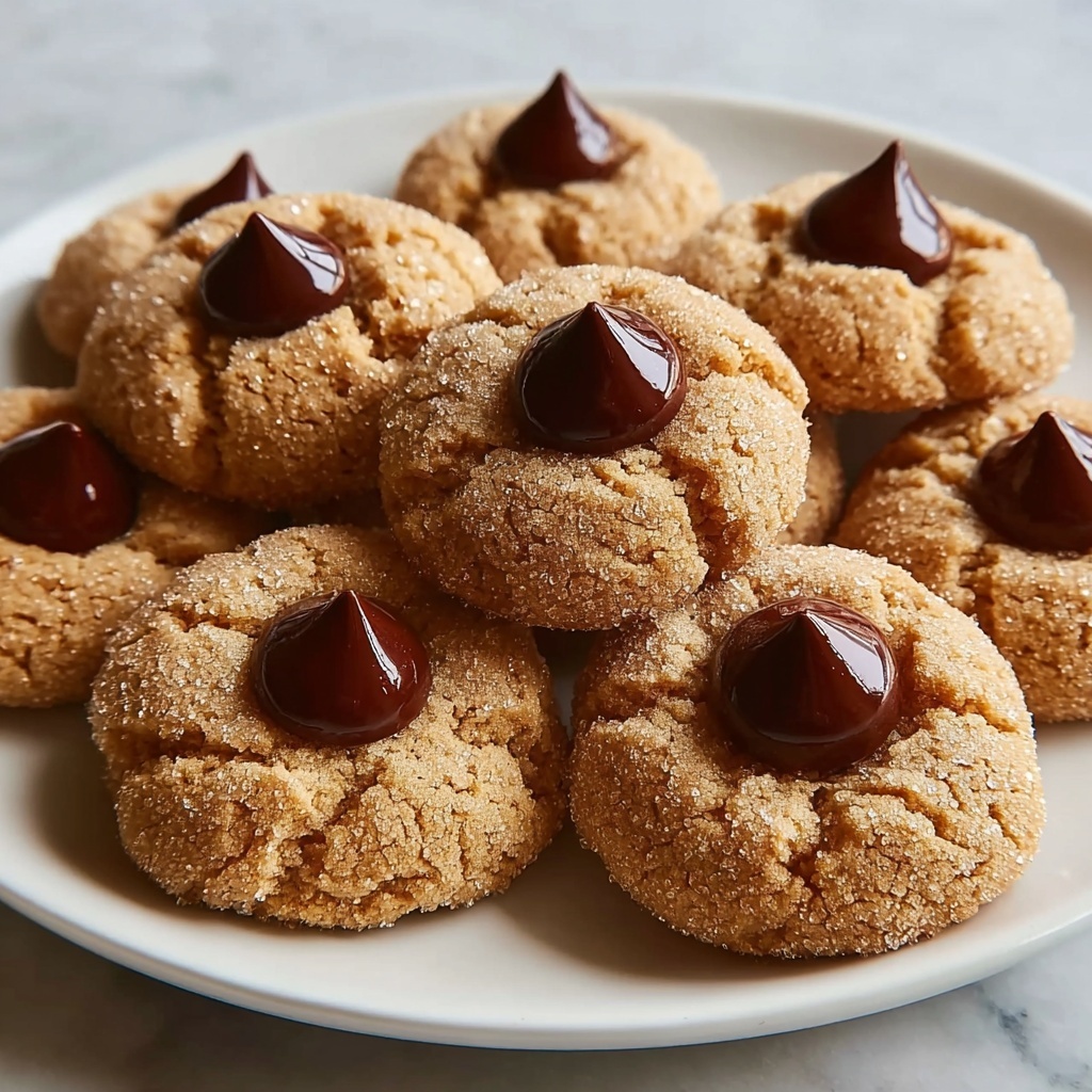 Bake your cookies for 10 minutes, then immediately take them out of the oven and gently press a chocolate kiss into the center of each warm cookie. This allows the chocolate to soften without losing its signature shape, creating an irresistible contrast of textures once cooled.