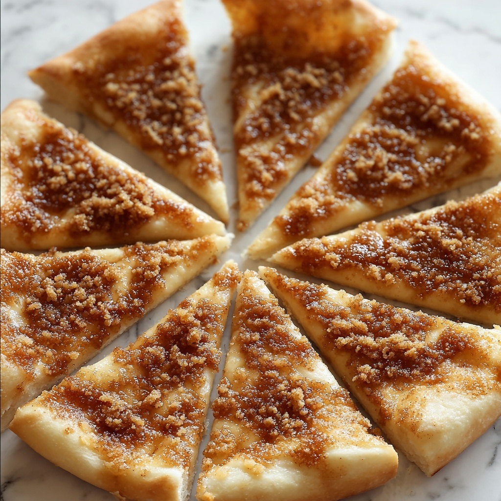 Why not serve this dessert pizza as individual twisted slices on a decorative platter? You could also create mini cinnamon-sugar pizzas by dividing the dough into smaller rounds before baking. It makes for a playful presentation that’s perfect for parties or brunch gatherings.