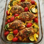 If you’ve been searching for a vibrant, mouthwatering dinner that brings color and flavor together in perfect harmony, this Colorful Grilled Chicken with Roasted Vegetables Recipe is the answer you didn’t know you needed. Juicy, well-seasoned chicken breasts paired with the smoky sweetness of grilled red and yellow bell peppers, zucchini, and cherry tomatoes make each bite an absolute celebration of taste and texture. The fresh squeeze of lemon at the end wakes everything up, making this dish as refreshing as it is satisfying — a true feast for your eyes and palate