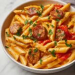 This creamy Cajun sausage pasta is a flavorful, comforting dish featuring tender pasta tossed in a rich, spicy cream sauce with browned andouille sausage, sautéed bell peppers, and garlic, finished with a generous sprinkle of Parmesan cheese. Ready in just 30 minutes, it’s perfect for a quick weeknight dinner that’s bursting with bold Cajun flavors.
