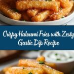 Crispy Haloumi Fries with a zesty garlic Greek yogurt dip that offers a perfect balance of salty, crunchy, and tangy flavors. These golden fried haloumi sticks are coated in seasoned panko breadcrumbs and served alongside a creamy, flavorful dip made with fresh garlic, lemon juice, and olive oil. Ideal for a delightful appetizer or snack that is quick to prepare and irresistible.