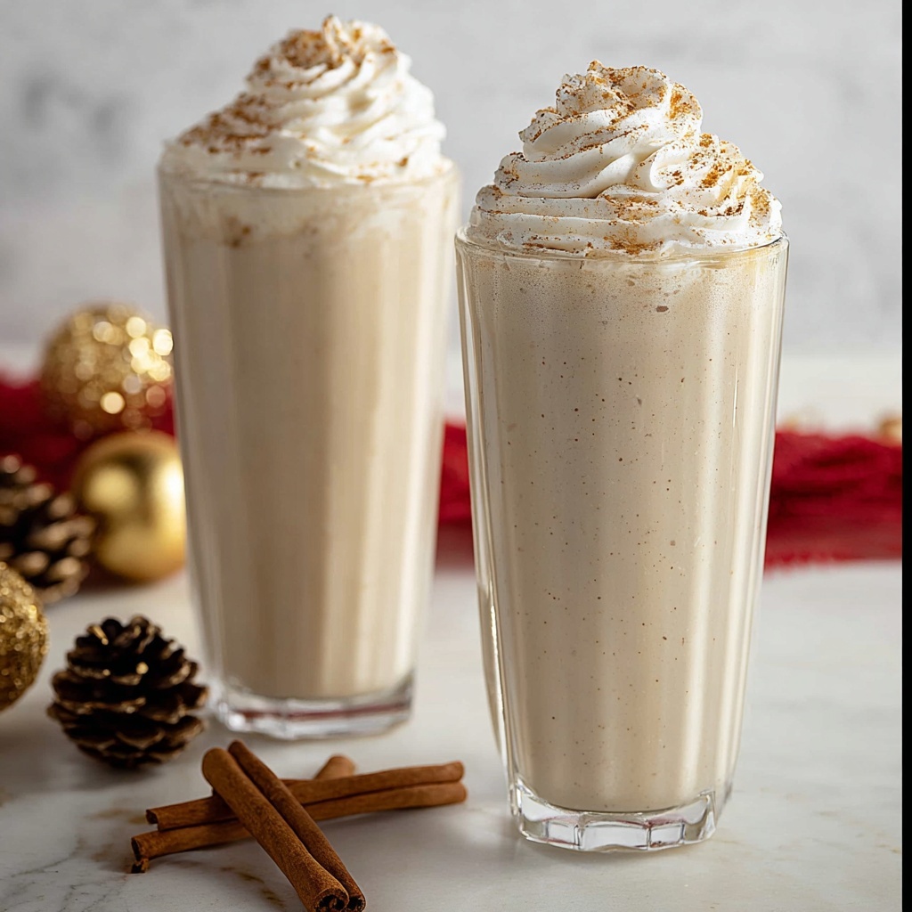 A creamy and festive Eggnog Milkshake that combines the rich flavors of classic eggnog with smooth vanilla ice cream, spiced with nutmeg and cinnamon, perfect for a quick holiday treat.