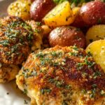 This Garlic Parmesan Chicken and Potatoes recipe is a flavorful one-pan meal featuring tender baked chicken breasts coated in a garlic herb butter sauce, paired with crispy roasted baby potatoes. It’s a simple, comforting dinner perfect for weeknights or casual gatherings, combining savory garlic, fragrant herbs, and the rich taste of Parmesan cheese.
