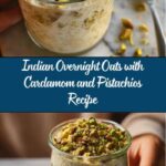 A comforting and flavorful Indian-inspired overnight oats recipe infused with aromatic cardamom and topped with crunchy pistachios. This easy, no-cook breakfast combines rolled oats, chia seeds, milk, and warm spices, sweetened naturally, and chilled overnight to create a creamy, nutritious start to your day.