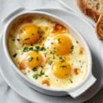 A simple and delicious keto-friendly recipe for shirred eggs baked with butter, heavy cream, and Parmesan cheese. This low-carb dish is perfect for a quick breakfast or light meal, featuring creamy, soft baked eggs with a rich cheesy topping.
