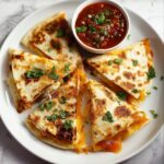 Elevate your Mediterranean Quesadillas Recipe by arranging the wedges in a circle on a large platter and sprinkling pomegranate seeds and toasted pine nuts on top for an unexpected burst of sweetness and crunch. You can also serve them with a side of hummus or roasted red pepper dip to further explore those Mediterranean vibes.