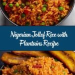 A flavorful and vibrant Nigerian Jollof Rice recipe cooked with a blend of spices, tomatoes, and herbs, served with sweet, golden-fried ripe plantains. This classic West African dish is perfect as a comforting main course, combining savory, tangy, and slightly sweet flavors for a satisfying meal.