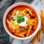 Nothing completes this soup better than fresh, colorful toppings. Crispy tortilla strips add delightful crunch, shredded cheese brings creamy richness, and a dollop of sour cream adds cool tang. Don’t forget chopped cilantro and a squeeze of lime for a zesty kick that brightens every spoonful.