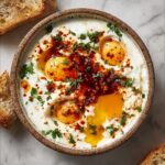Turkish Eggs with Creamy Yogurt & Butter Sauce is a delightful and easy-to-make breakfast or brunch dish featuring perfectly poached eggs nestled in a tangy, herbed Greek yogurt sauce topped with a fragrant spiced butter drizzle. This recipe balances rich, creamy textures with fresh herbs and a touch of heat, served best with warm pita or crusty bread to soak up every delicious bite.