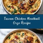 This Tuscan Chicken Meatball Orzo recipe is a comforting, creamy one-pan meal featuring tender chicken meatballs, sautéed aromatics, sun-dried tomatoes, and fresh herbs simmered with orzo pasta in a rich Parmesan cream sauce. Perfect for a satisfying weeknight dinner, it combines rustic Italian flavors with a delicate, smooth texture.