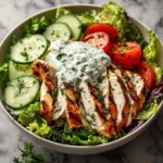 If reheating leftover salad, it’s best to separate the chicken and warm it gently in the microwave or on the stovetop. Add the fresh salad and tzatziki dressing only after reheating for the best texture and flavor.